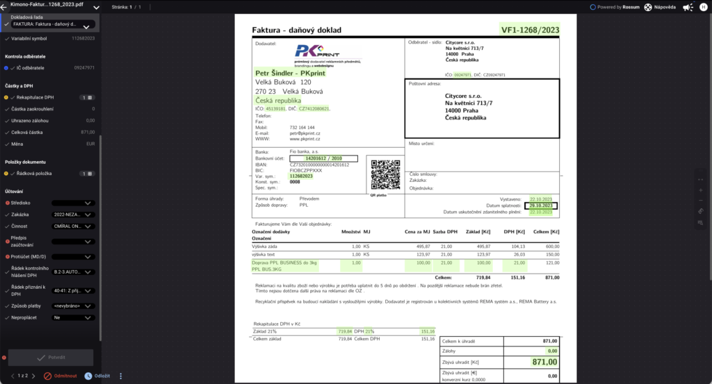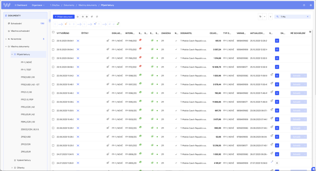 Předávání, vytěžování, evidence, schvalování, podepisování, archivace